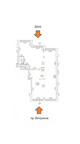 • 1 этаж, 2-а отдельных входа (один с пр. Ветеранов, другой со двора).