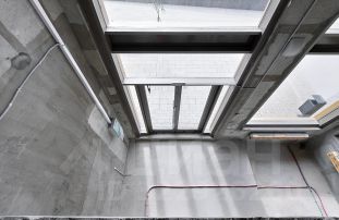 Планировочное решение довольно уникальное, тк состоит из двух уровней, имеет высокие потолки до 7м и огромное количество света, за счет панорамного остекления.