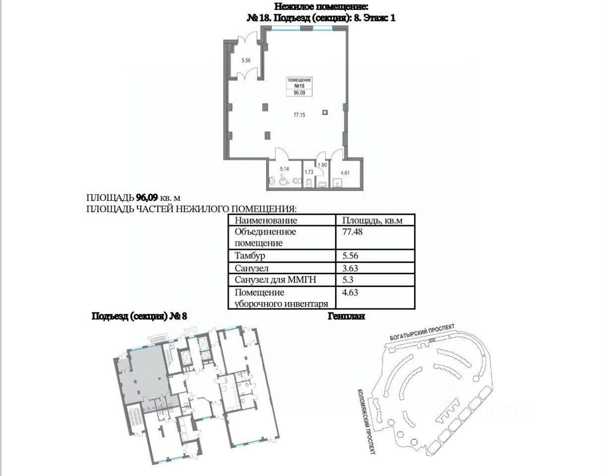 - Помещение 96,06м² на первой линии