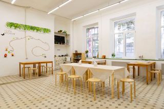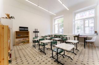 Свежий ремонт. На полу отреставрированная метлахская плитка, стены и потолок зашпаклеваны и покрашены, двери тоже