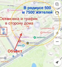 Помещение расположено в густонаселенном районе, в радиусе 500 метров около 3000 квартир=7500 жителей!