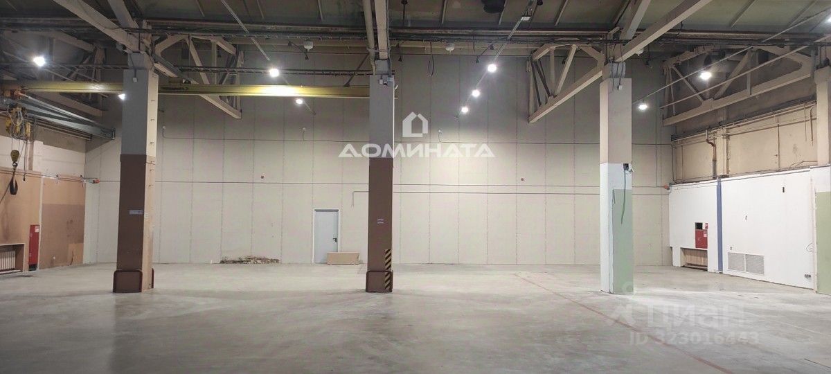 Площадь 700 кв. м., высокие потолки 6,68-8,58 м., шаг колонн 4,34 м., ровный бетонный пол, кран-балка на высоте 5,8 м.