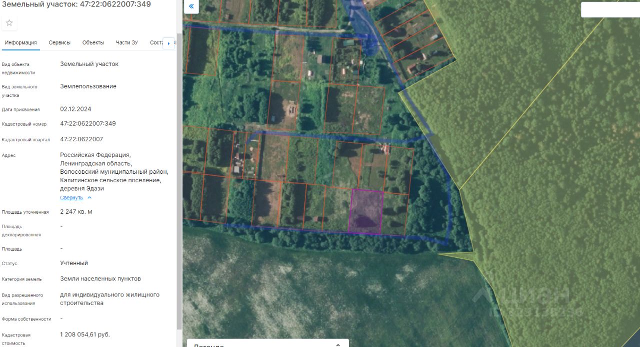 Земельный участок с кадастровым номером 47:22:0622007:349, площадью 2247 кв.м.