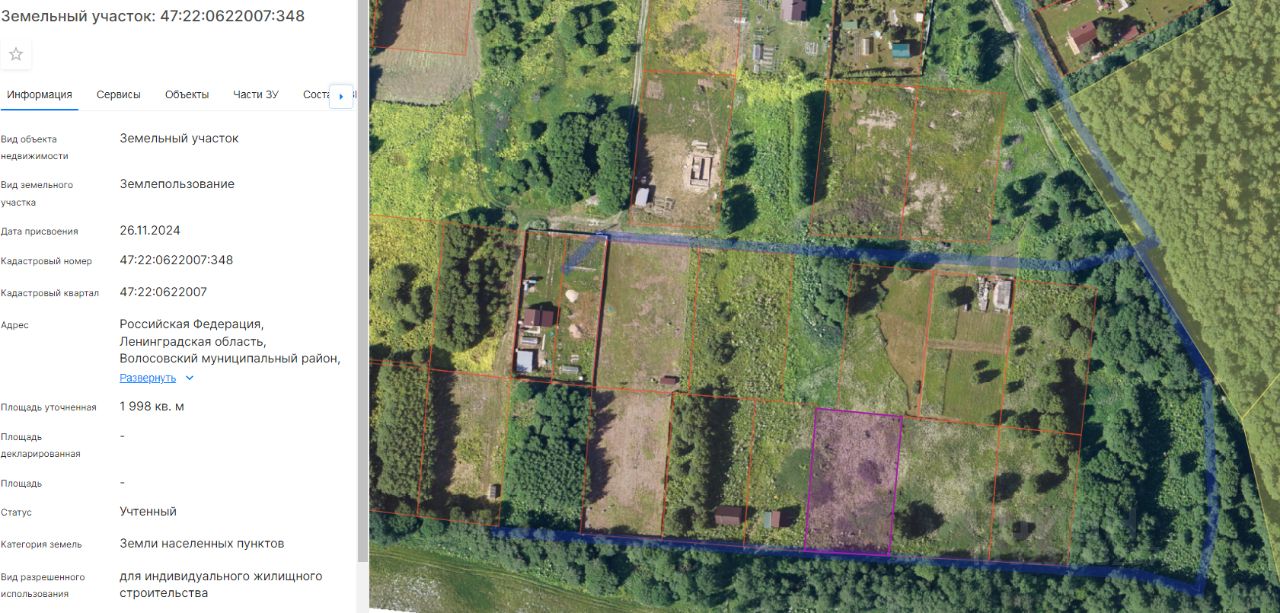 Земельный участок с кадастровым номером 47:22:0622007:348, площадью 1998 кв.м.