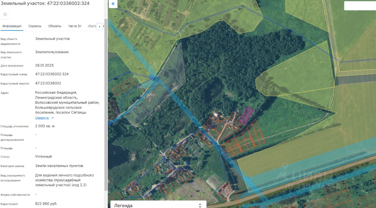 Земельный участок с кадастровым номером 47:22:0336002:324, площадью 2000 кв.м.