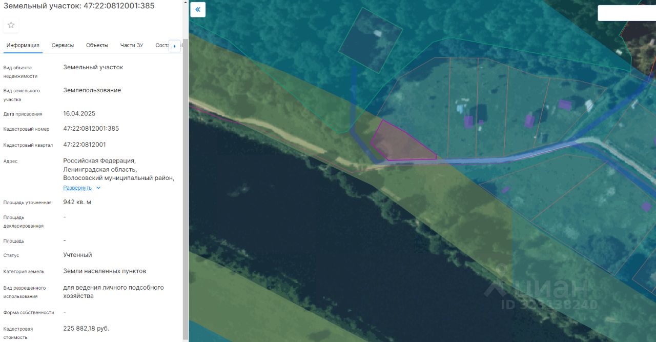 Земельный участок с кадастровым номером 47:22:0812001:385, площадью 942 кв.м.