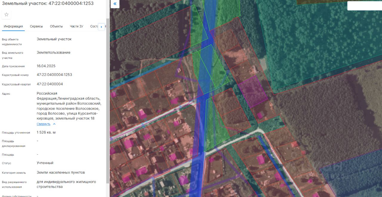 Земельный участок с кадастровым номером 47:22:0400004:1253, площадью 1526 кв.м.