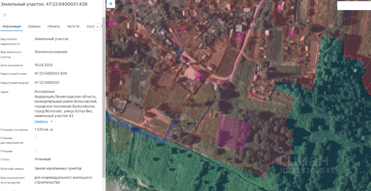 Земельный участок с кадастровым номером 47:22:0400031:439, площадью 1520 кв.м.