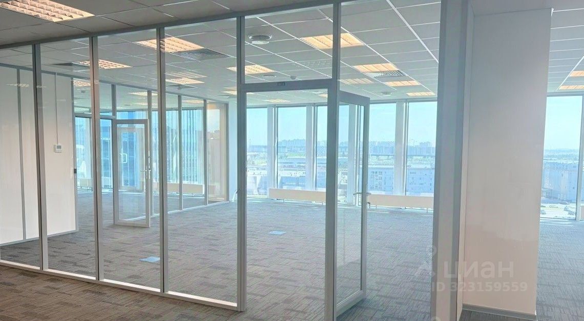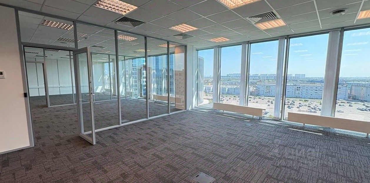 Описание помещения: Офисный блок со стандартной отделкой-пол ковролин, стены под покраску, потолок подвесной-типа Армстронг, панорамное остекление, санузлы в блоке.