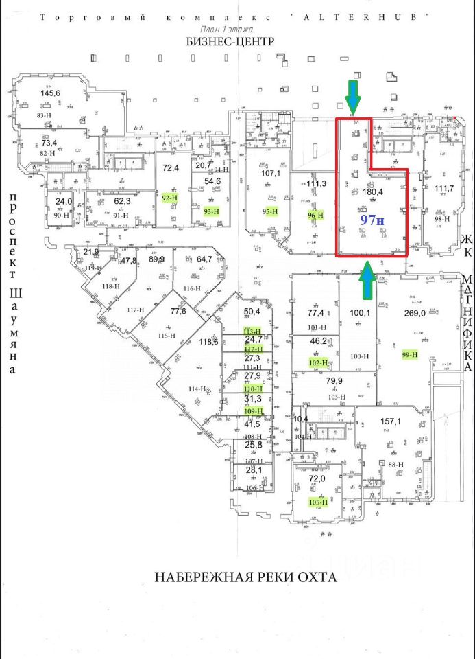 Предлагается в аренду коммерческое помещение 97н свободного назначения в торговой галерее ALTERHUB, расположенной на 1м этаже нового ЖК бизнес-класса "Alter" в Красногвардейском районе по адресу: проспект Шаумяна, дом 14.