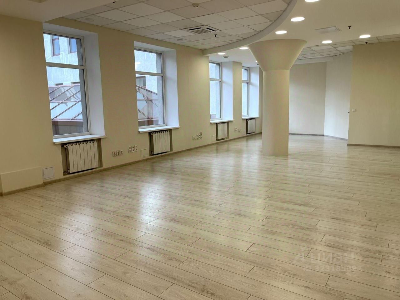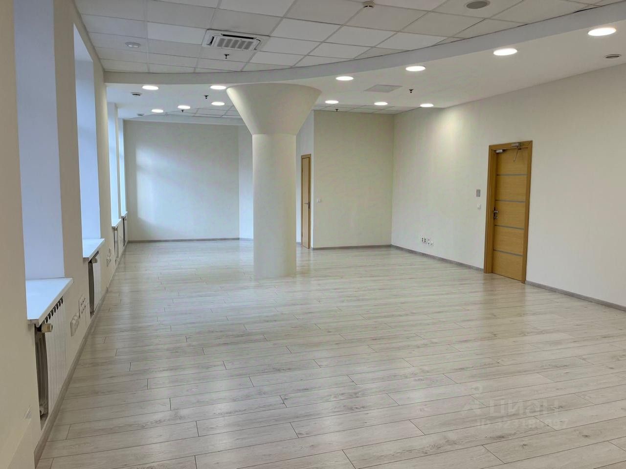 Просторное и светлое помещение, окна выходят на улицу. Есть отдельное помещение с кухонной зоной.