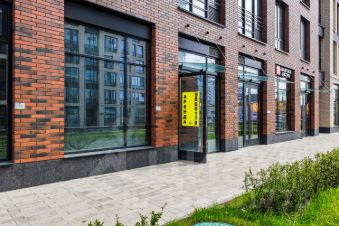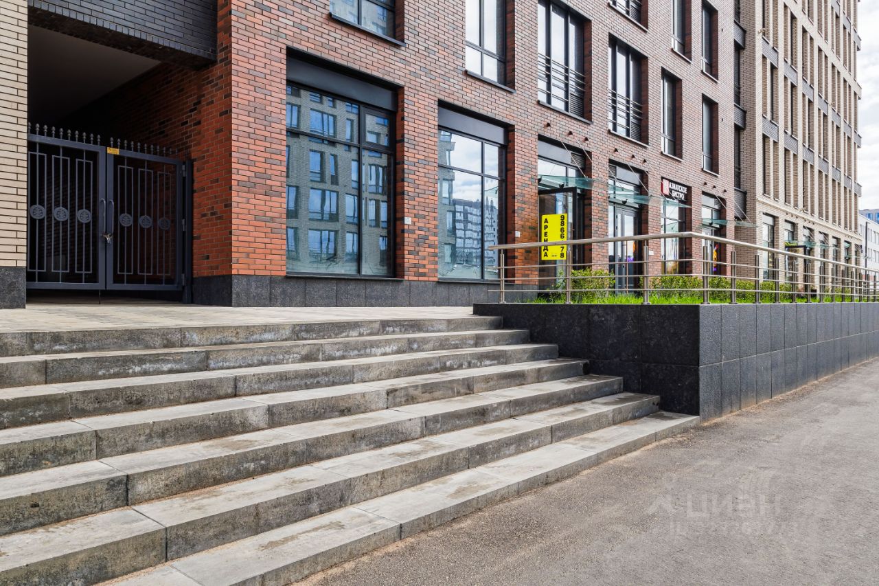 Помещение расположено в фасадной части третьего корпуса ЖК Svetlana Park, хорошо просматривается с Манчестерской улицы и с межквартального проезда.