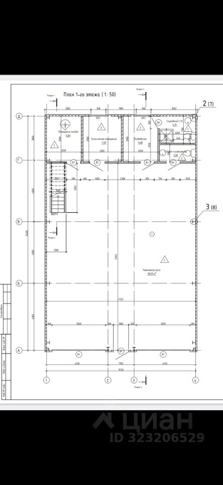 Всего 6 помещений: 1 этаж - основной цех, гостевой туалет с раковиной, раздевалка с душем, туалетом и раковиной, техническое помещение. 2 этаж - клиентская зона с миникухней, офисное помещение.