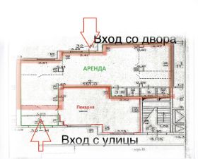 Входа два: 1) с улицы, с Богатырского (общий вход с пекарней) 2) со двора, с возможностью подъезда и разгрузки.