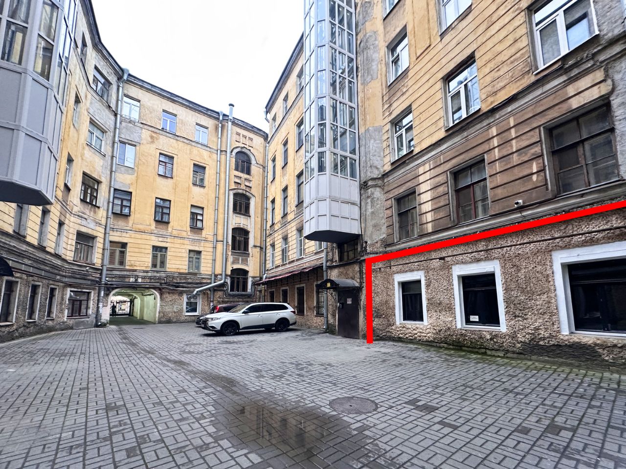 Первая линия проспекта. Первый двор. Высокий пешеходный трафик! Помещение находится в 5 минутах пешком от станции метро Достоевская и Владимирская.