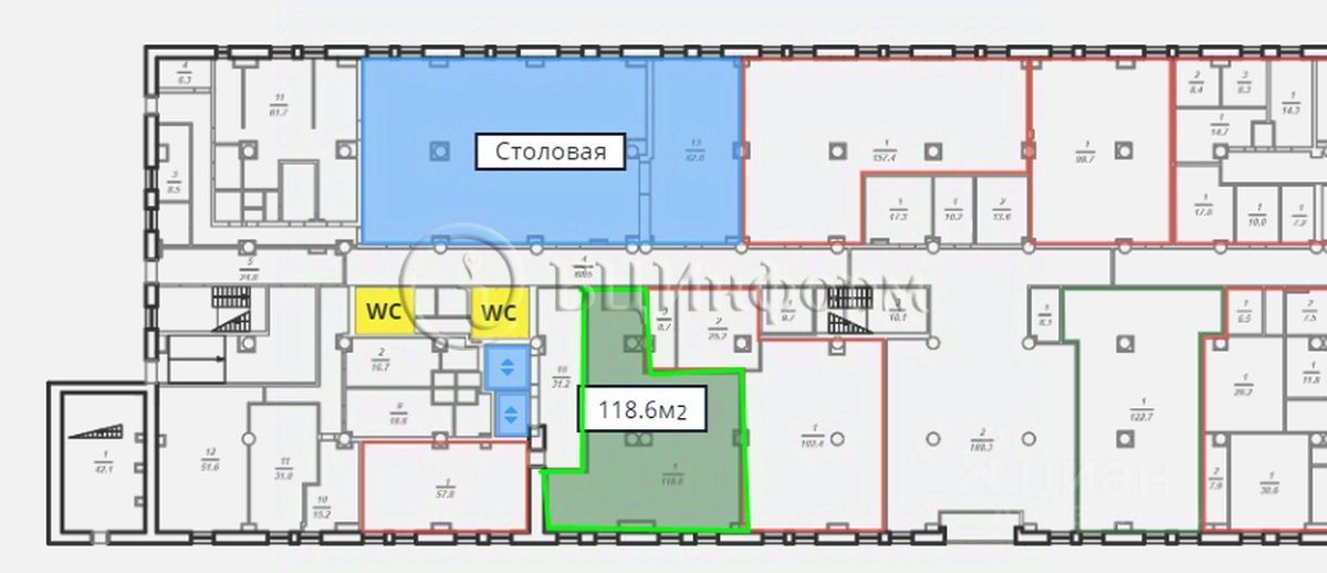 Вниманию арендаторов предлагается помещение 118.6 м2 офисного назначения.