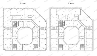 Также предлагаются целиком 8 и 9 этажи бизнес-центра со смешанной планировкой. Кухни и санузлы расположены на каждом этаже.