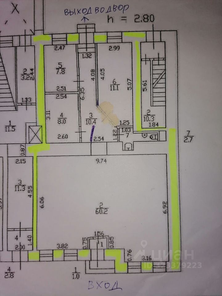 Apендa пcн 1 линия c 2мя вхoдами, 101,2 м2