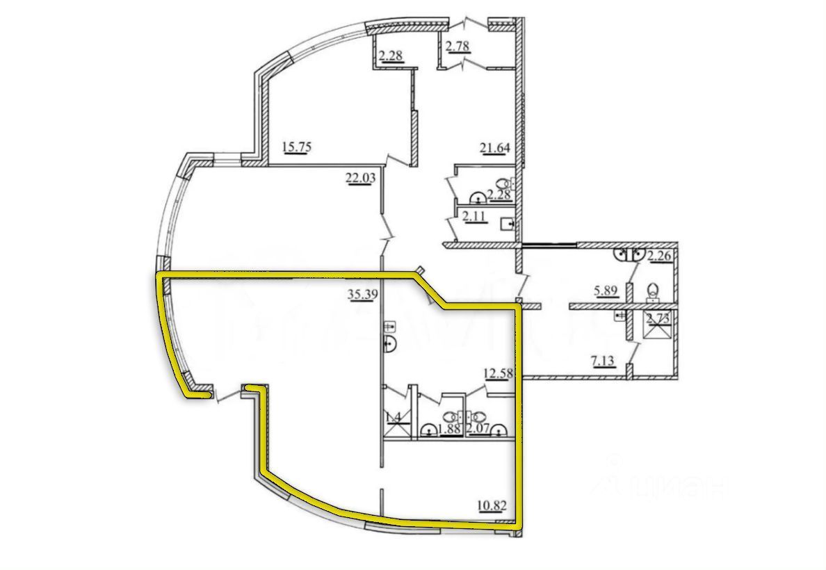 *Кабинетная планировка с не несущими стенками, которые легко можно демонтировать, организовав открытый торговый зал.