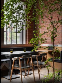 Это уютное бистро с авторской кухней на итальянской основе. Интерьер выполнен в стиле современного лофта: кирпичные стены, панорамные окна, мраморные детали и живое дерево в центре зала. Атмосфера — стильная, но тёплая и живая.