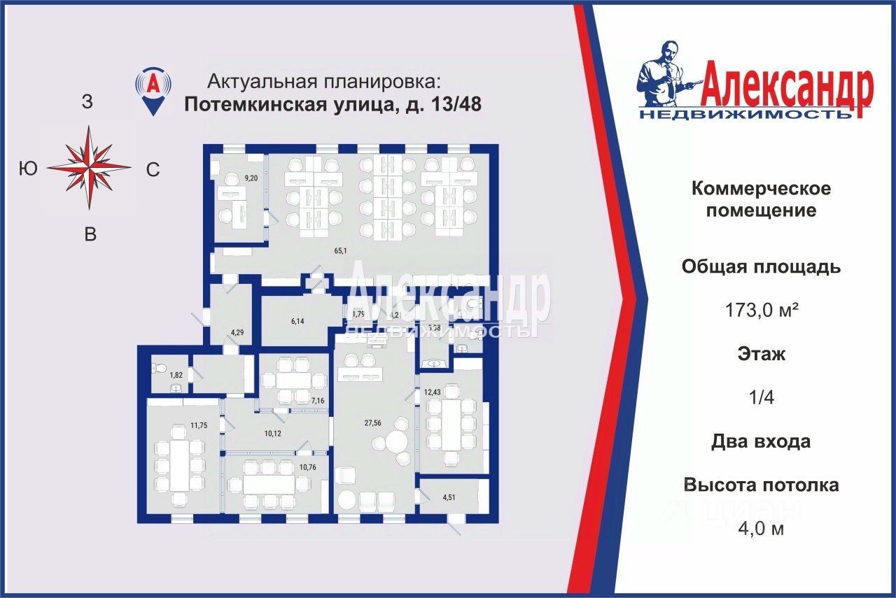 1704932 Предлагаем в аренду представительский офис компании или как помещение свободного назначения с качественным дизайнерским ремонтом площадью 173м² в историческом квартaлe Центрального района Санкт-Петербурга на Потемкинской ул. д. 13.