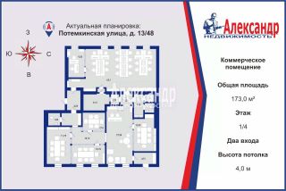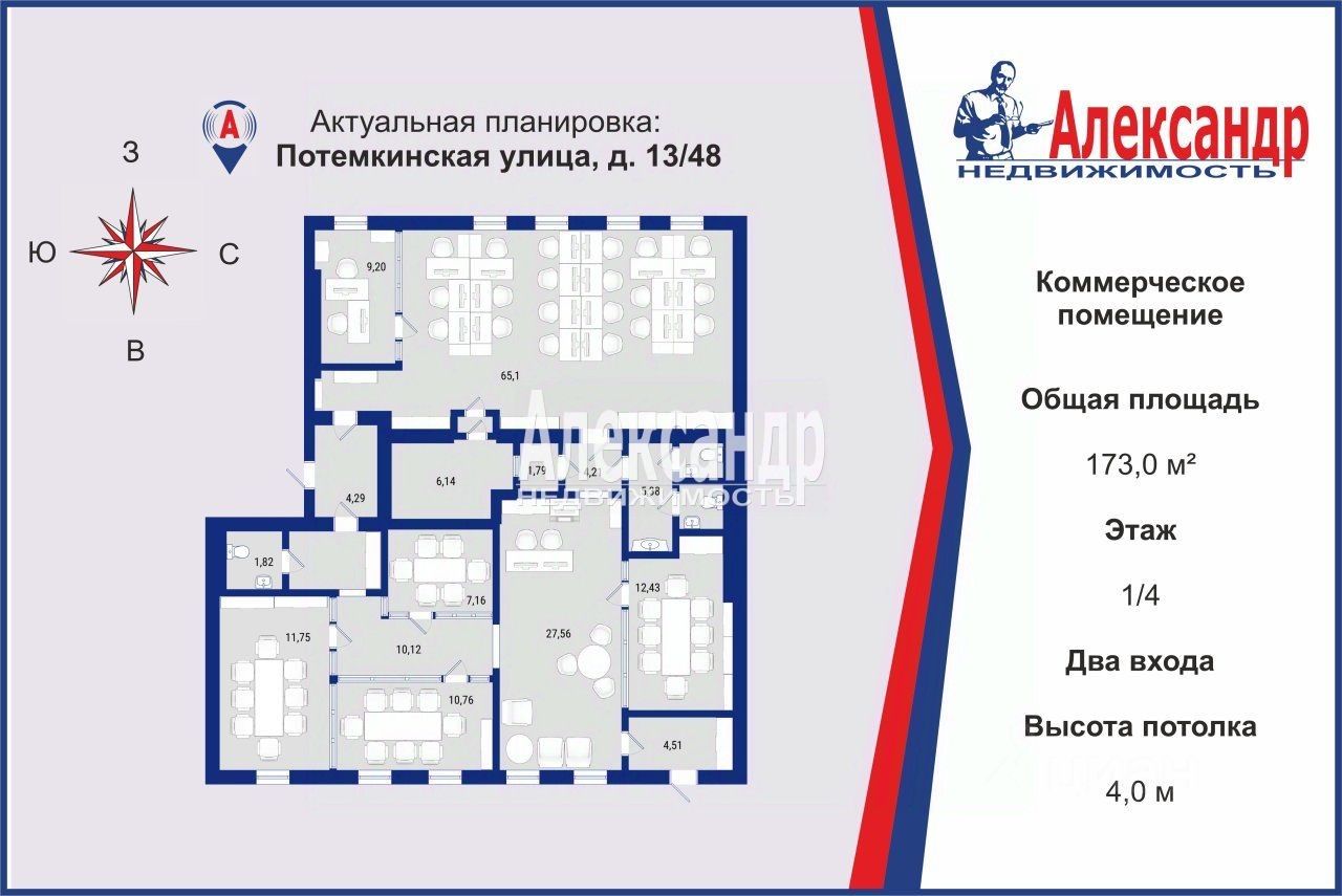 1704949 Предлагаем в аренду представительский офис компании или как помещение свободного назначения с качественным дизайнерским ремонтом площадью 173м² в историческом квартaлe Центрального района Санкт-Петербурга на Потемкинской ул. д. 13.
