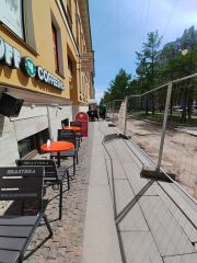 Имеется 2 санузла. Окна выходят на пешеходную зону. Оборудована летняя терраса со столиками.