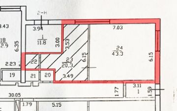 Общая площадь: 64 м² (два соседних помещения 44,3 и 20 + с\у 3).