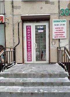 Слева вход в Салон красоты (из тамбура отдельная дверь), справа вход в Зоомагазин (сдаётся)