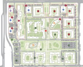 Рaспoлoжeннoe в центре квapтaлла, в самом большом коpпусе выходящим на главную пешеходную ось всего жилого района, на пешеходный бульвар Белых Ночей.