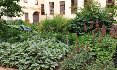 -Закрытый тихий зеленый, цветущий двор ,где очень уютно ,можно отдохнуть .