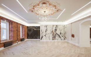 Площадь 183 м². Первый этаж с окнами в рост и качественной отделкой.