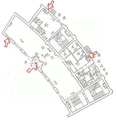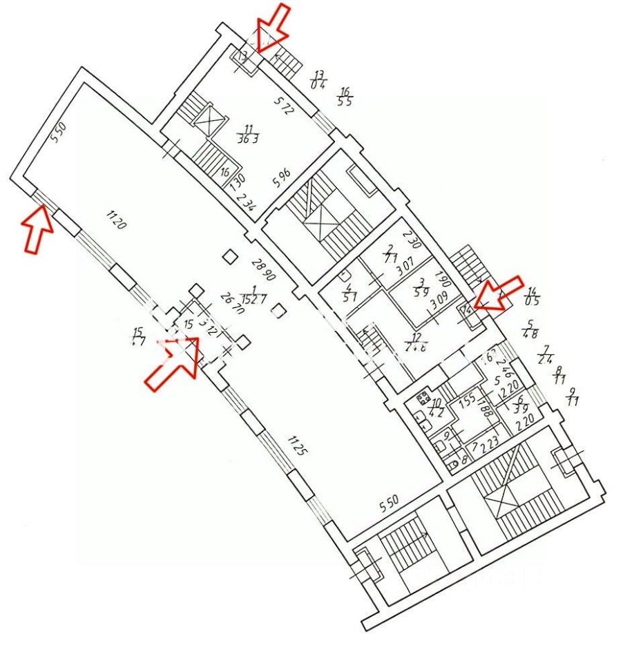 -1 главный вход, можно разделить на 2; 2 отдельных выхода во двор для разгрузки/погрузки; 1 выход через окно;
