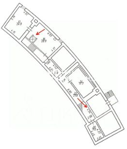-1 этаж - 153 м2, основной зал, потолки 4.35 м., высокие окна, чистовая отделка; 2 этаж - 103.1 м2; подвал - 108.8 м2;