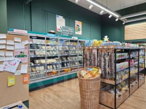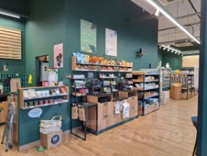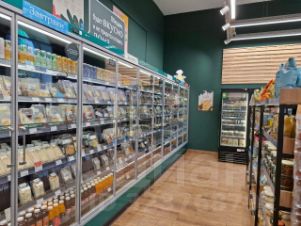 Находится внутри продуктового ритейла магазина "Жизньмарт" ( аналог ВкусВилла). Соседи с двух сторон ДоДо пицца , ВинЛаб.