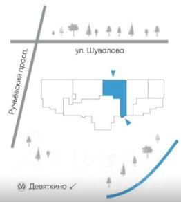 До метро Девяткино 10 минут на автомобиле или 25 минут пешком