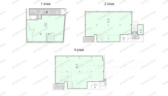 Также доступны для аренды 2-4 этажи целиком — светлые помещения с планировкой open space, кабинетами, переговорными и санузлами.