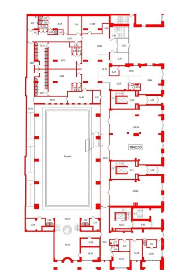- Чаша под бассейн, так же технические и вспомогательные помещения (раздевалки, душевые, тренажёрные и инвентарные помещения).