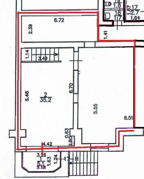 Oтдeльный вxод и окно выходят на бульвар Новаторов. В помещении есть свеча (выделенный канал для общепита). Эл.мощность 25квт, возможно увеличение.