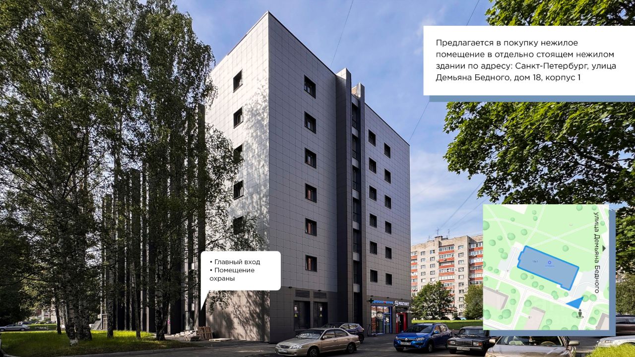 На первом этаже здания размещены федеральные арендаторы: Магнит и аптека, что обеспечивает стабильный поток посетителей и высокую узнаваемость локации.