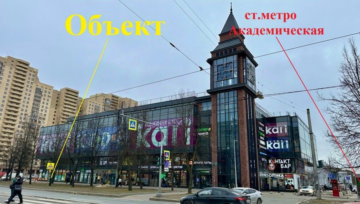 Помещение расположено в развитом, густонаселенном районе Санкт-Петербурга, в торговом комплексе, в шаговой доступности от ст. метро "Академическая"