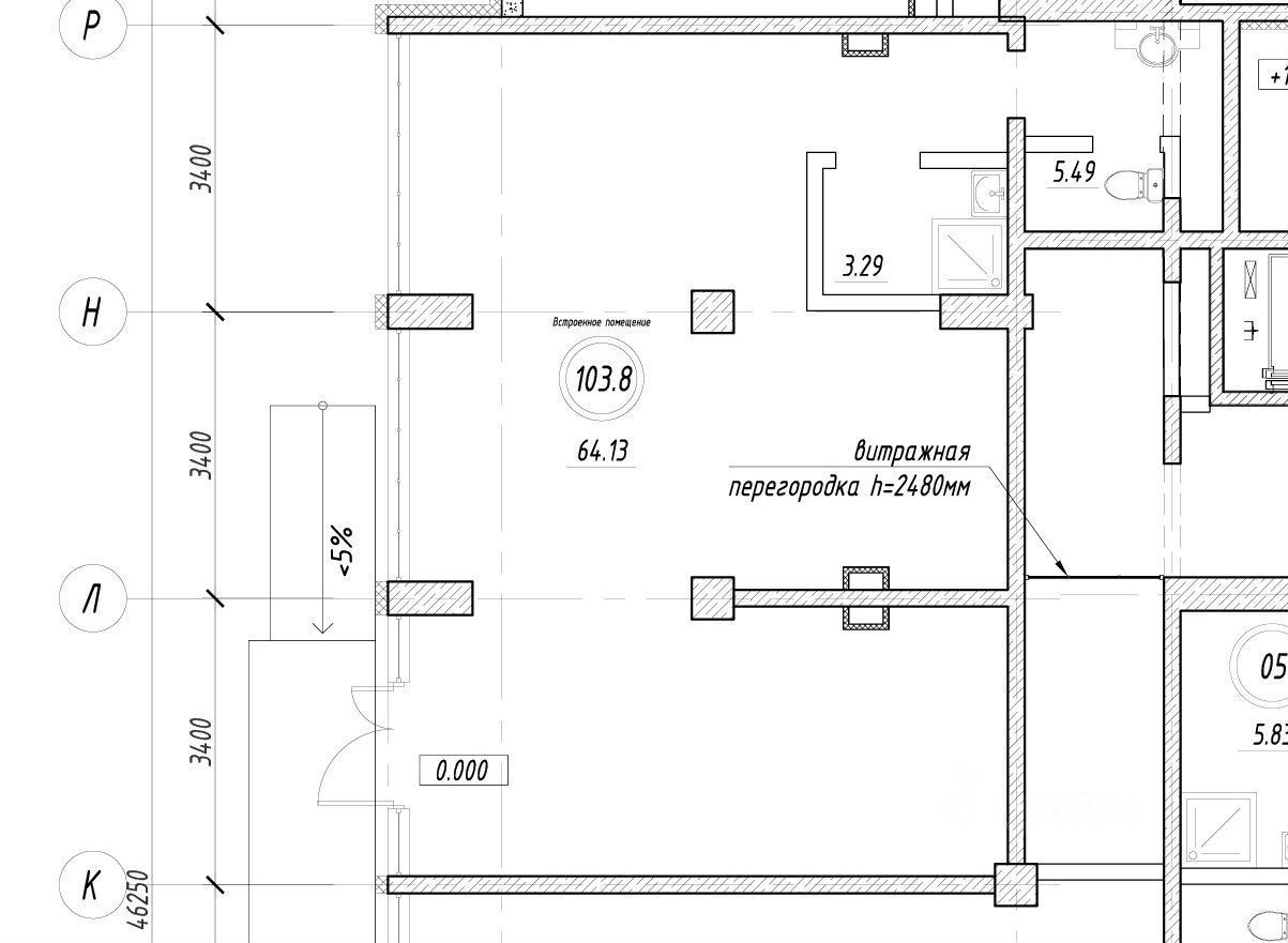В пoмещение cуществуeт выводы водоcнабжения и канализации, теплоснабжения, вентиляции.