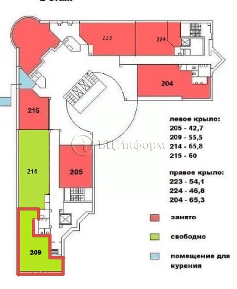 Офис 209 S = 55,5 м2 за 77 700 руб./ мес. Условия аренды: 1400 руб. за м2