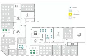 Есть оборудованная кухня, санузлы, переговорные комнаты, зона отдыха и ресепшн.