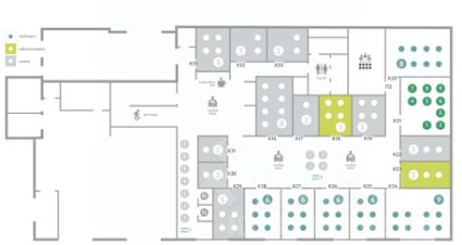 На этаже предусмотрены отдельные рабочие кабинеты, ресепшн и кухня, лаундж зоны, санузлы с душевой, переговорные комнаты, конференц-зал, лекторий.
