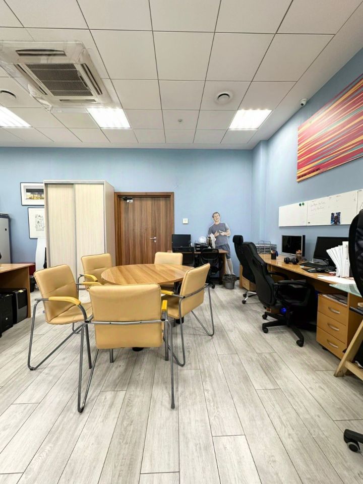 Описание помещения: Офисный блок с типовой отделкой- напольное покрытие гомогенный линолеум или ламинат, подвесной потолок типа Армстронг, стены оклеены обоями под покраску, оборудована зона кухни, два кабинета и зона опен спейс. Свободен блок с 1 декабря 2025 года.