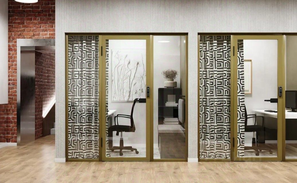 Пространство уже оборудовано всей необходимой мебелью - функциональные рабочие столы, офисные кресла, места хранения для документов.