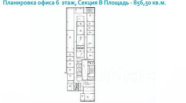 6 этаж, Секция В площадь - 856,5 м2, плюс коэффициент мест общего пользования 1.12 процентов.