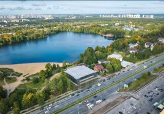 Панорамное остекление с видом на Суздальское озеро и благоустроенный парк.