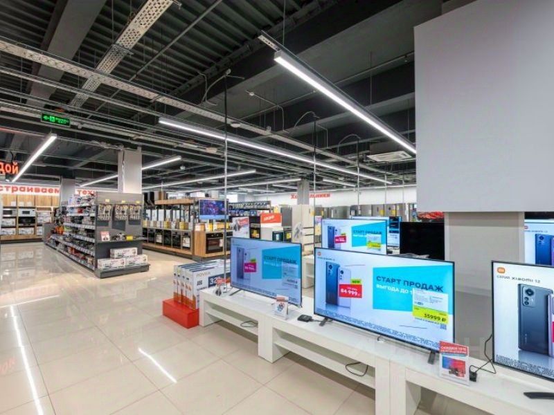 Пятиэтажное здание, выполненное в современном стиле. Включает в себя два строения, соединенных между собой на уровнях второго и третьего этажа. Для удобства посетителей торговый центр оснащен эскалаторами и лифтами.